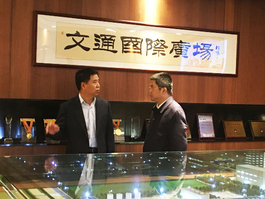 2020年11月15號(hào)下午,楊浦區(qū)委副書記、區(qū)長(zhǎng)薛侃,區(qū)政府辦主任葉正明,區(qū)投資促進(jìn)辦主任王蓮青,定海街道辦事處主任劉刃,區(qū)合作交流辦副主任高云翔等一行,來到文通囯際廣場(chǎng)28樓考察調(diào)研,山西省政府駐滬辦事處韓俠主任、上海山西商會(huì)李剛會(huì)長(zhǎng)、文通集團(tuán)張永勝董事長(zhǎng)以及部分在滬山西籍企業(yè)家參加了座談交流。